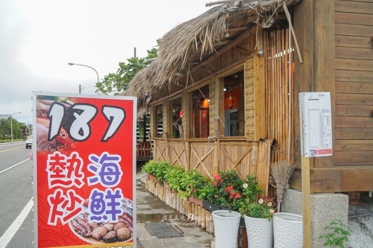 花蓮海崖谷附近的海岸線,受歡迎的海鮮餐廳有:屋銤海鮮、泰瘋隨意料理、海風味小吃、187 海鮮熱炒與 055 龍蝦海鮮等餐廳。Angela 選擇了 187 海鮮熱炒,因著在地人推薦的評價,這家海產份量與價錢相對中肯,事先電話預約訂位,還好有位才能吃到傳說中的美食。