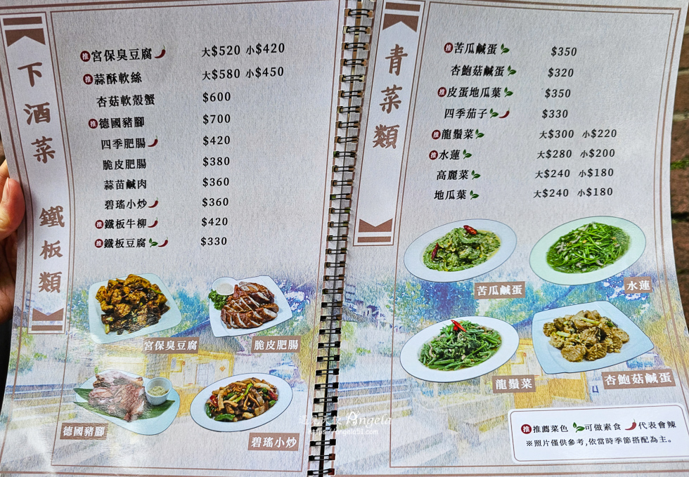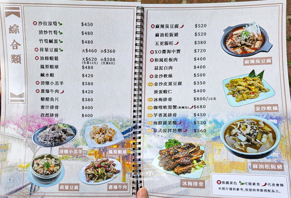 碧瑤山莊菜單如上圖。菜單上有標註推薦的菜色都是好吃的料理,每桌必點推薦菜是白斬雞與竹筍。很推薦大家 6-8 月來這吃飯,此時正是觀音山綠竹筍產季,必點推薦沙拉涼筍。