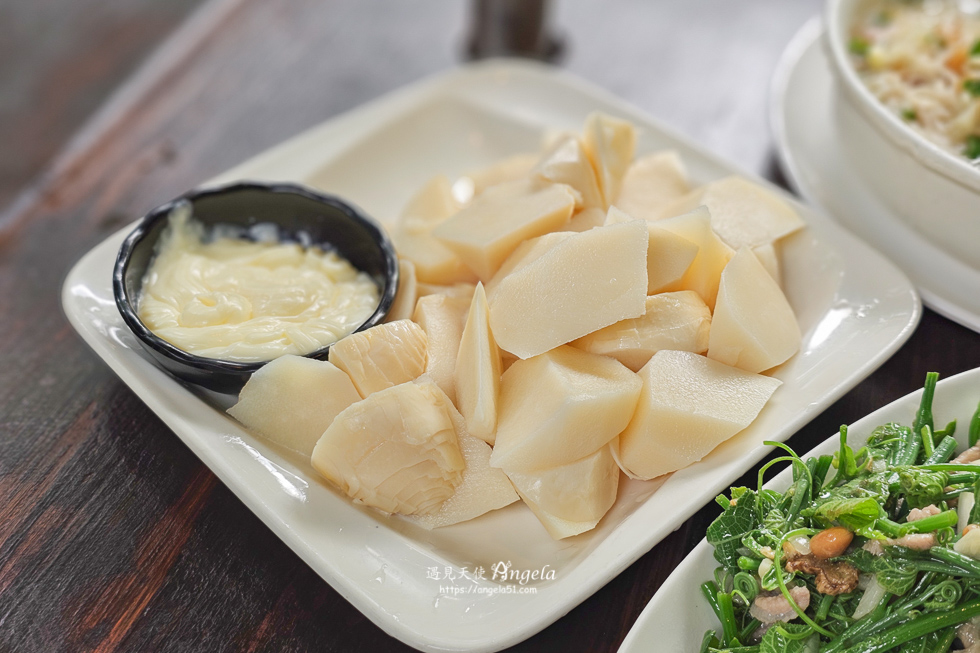 6-8月是觀音山綠竹筍產季,來到碧瑤山莊一定要點竹筍料理,夏天喝湯太熱,點沙拉涼筍最推薦。涼筍份量很大一盤,味道清甜不沾沙拉醬也很好吃,口感軟硬適中很好吃,真心大推薦。