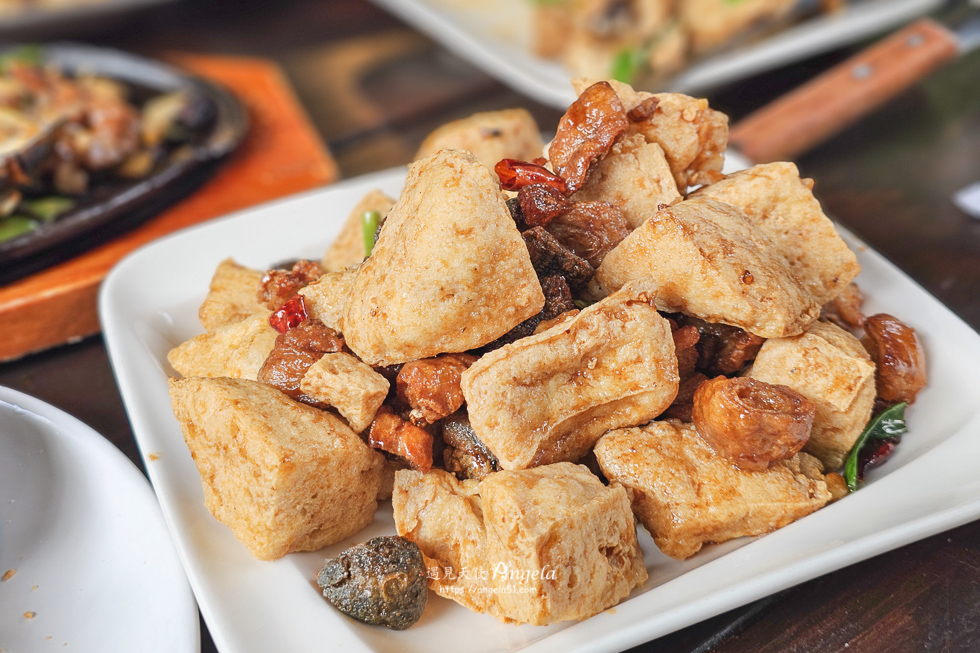 宮保臭豆腐的配菜還有炸肥腸與炸皮蛋,這樣一大盤居然是小份的份量。臭豆腐外酥內微軟,宮保醬汁沒有巴附完整不夠入味,有點可惜。