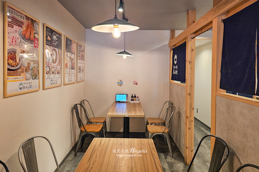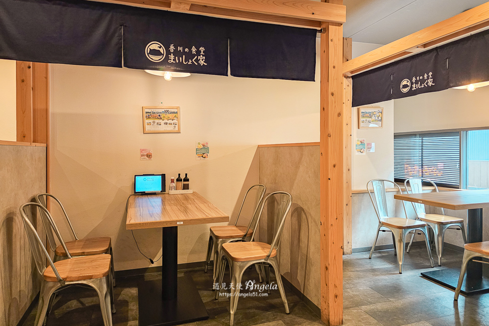 香川の食堂的消費方式,進店後向店員告知用餐人數,當天非尖峰時段,店員指示上 2 樓找座位。自行找好座位入座後,桌上有平板,直接以平板點餐就可以了。平板內的菜單以日文為主,搭配圖片再加上 google 翻譯,其實沒有太大的困難。點好餐,送單出去後,店員會將餐點送上桌。