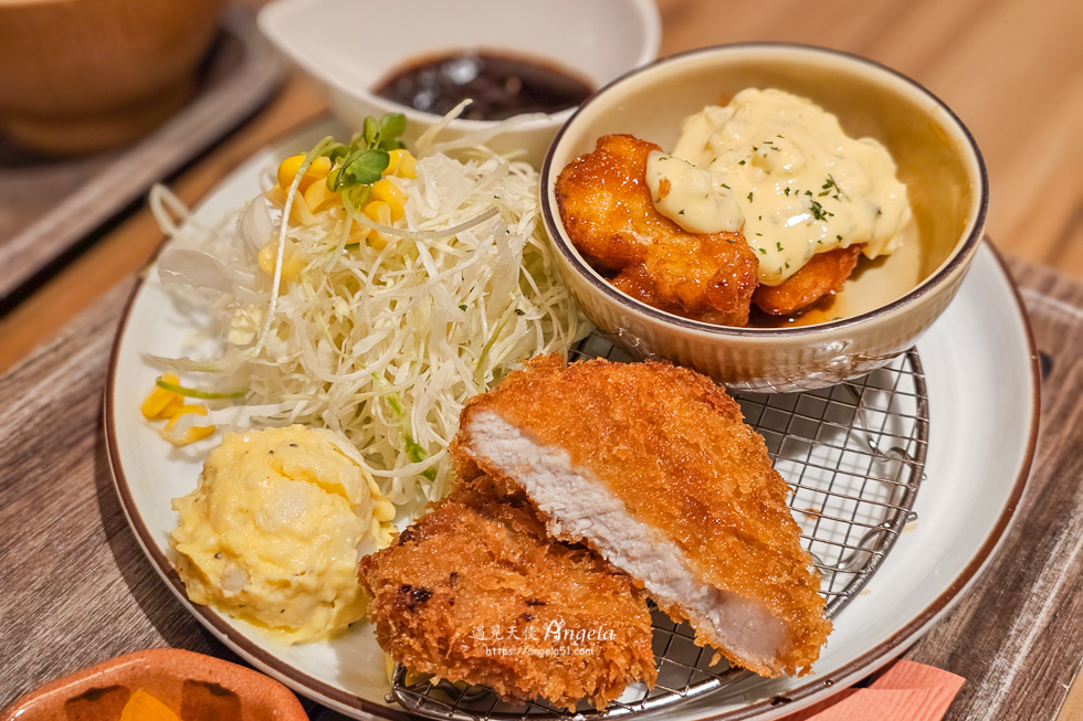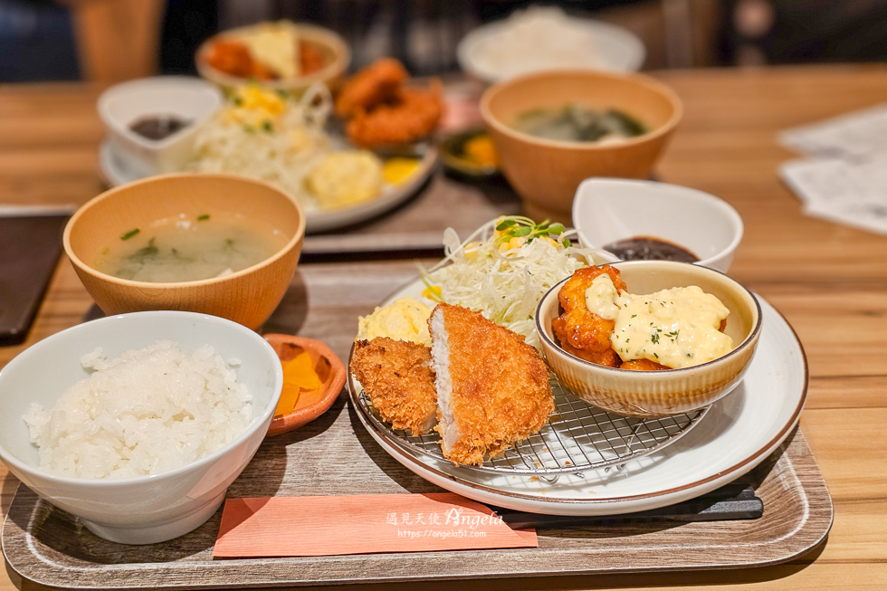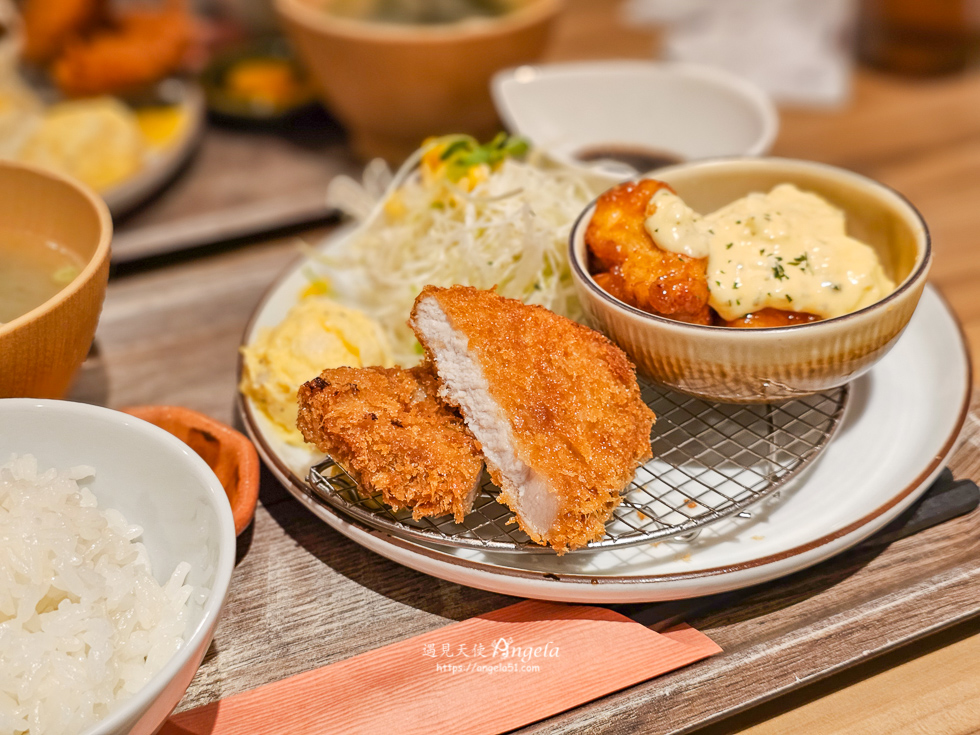 當天點了炸豬排與南蠻雞雙拼定食,這裡的定食套餐單價不貴,這樣一套 1080 円,可以吃飽味道也好,Angela 我個人很喜歡,一定要推薦給大家來高松找餐廳的美食清單參考。