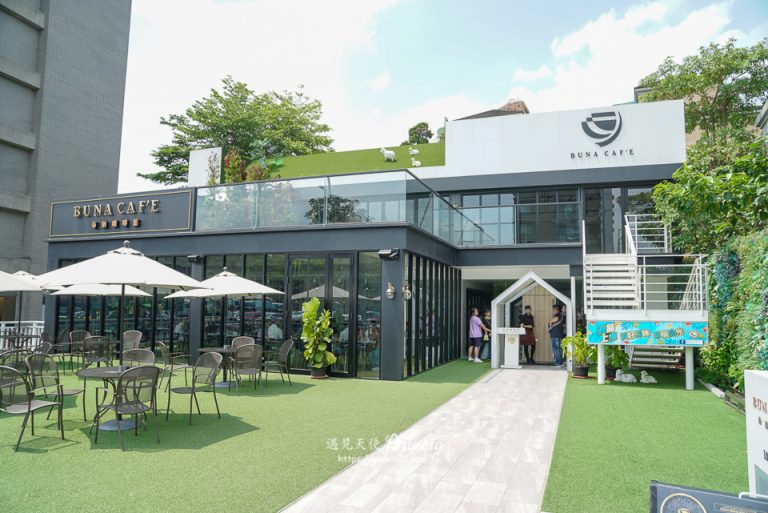 內湖不限時咖啡廳,布納咖啡從外面到裡面都很好拍照,門口的綠色植栽與人工草地,讓市區也能如此有自然清新的氛圍,如果天氣不熱,坐在戶外區也挺美好的。
