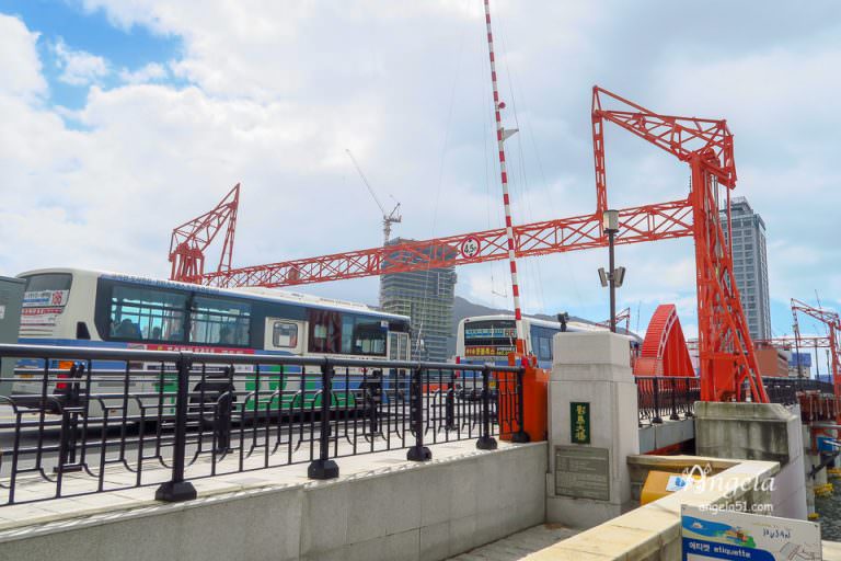 每天下午14:00-14:15就是影島大橋開橋的時間,這時刻總是吸引許多遊客駐足欣賞,看影島大橋開橋可以在河堤步道上看,也可以到樂天百貨樓頂的展望台欣賞從上看下的影島大橋開橋。