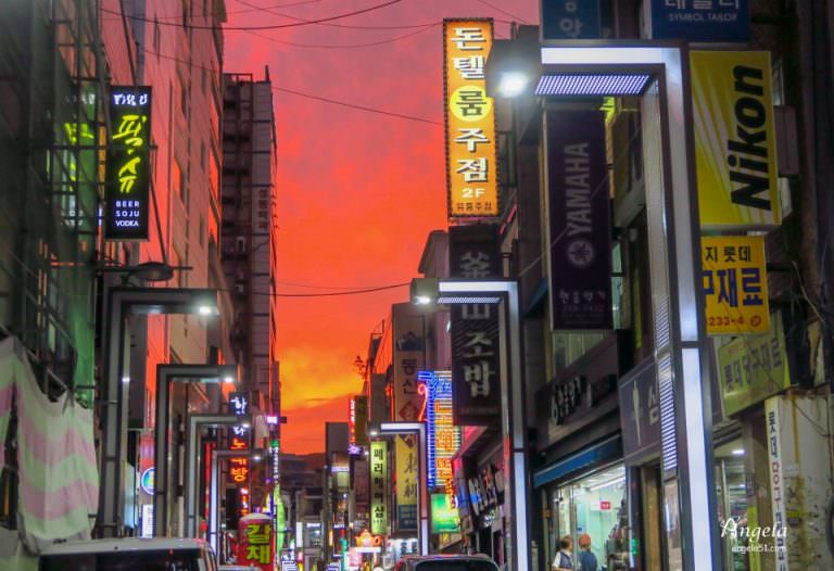 釜山南浦洞光復路是該區最熱鬧精華的地方,光復路上有多家服飾、彩妝店很好逛。我們當天抵達釜山時正好遇到颱風前夕,南浦洞火紅天空的景象大家一定不常見(誤)。