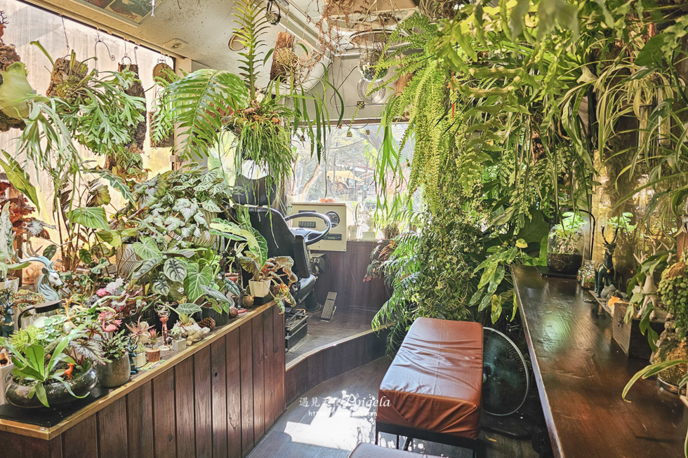 走進小巧的植物門,室內空間是舊巴士的主體,同樣也陳設了不少植物。室內座位是以吧檯座為主,偶而還會有小貓陪伴。