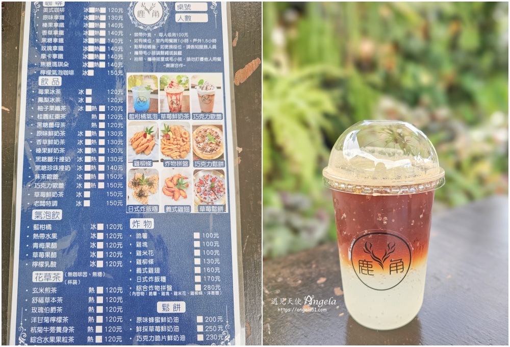 鹿角 Café 消費方式,每人低消 100 元,入內後自行找座位坐,巴士內櫃台點餐與結帳。鹿角 Café 菜單提供飲品、炸物與鬆餅等美食,沒有特別限制用餐時間。