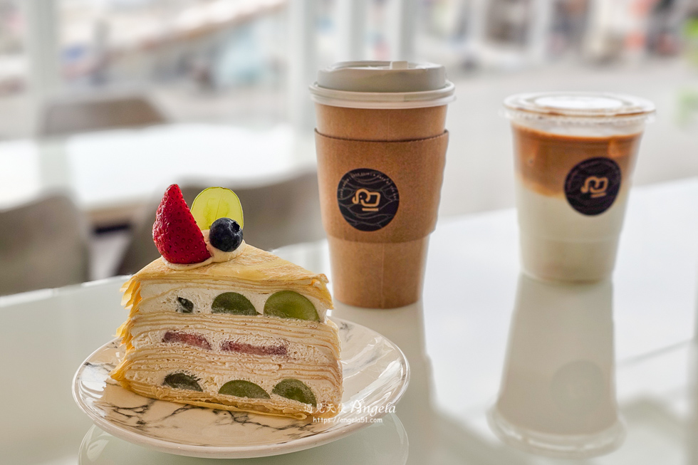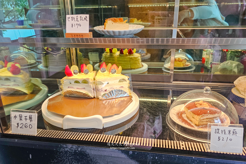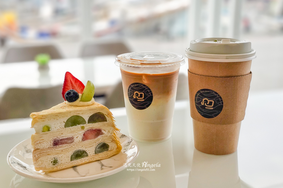 當天點了一杯冰拿鐵、宇治抹茶歐蕾與水果千層蛋糕。咖啡飲品表現中規中矩,內用也是用外帶杯裝。