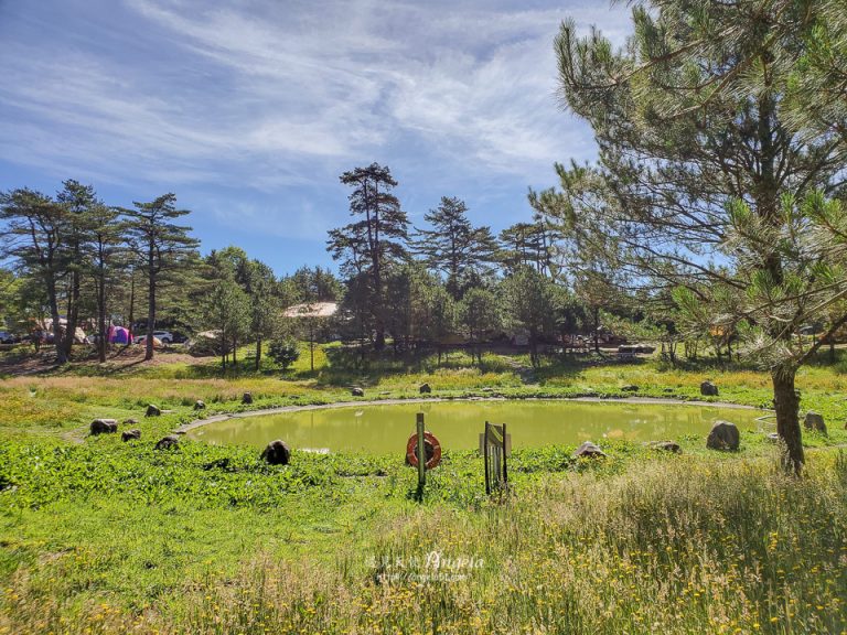 我們隔壁的 131 號營位也不錯,安靜景觀比我們好,前方樹少一些可以清楚觀賞露營區的池景,夏天欣賞貓耳菊花正美。