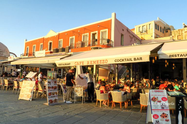 在Chania舊港口沿岸吃晚餐看夕照是最悠閒的享受,Café Remezzo 就在Kucuk Hasane Mosque章魚清真寺旁邊,也是我們第一晚在哈尼亞吃晚餐的餐廳。
