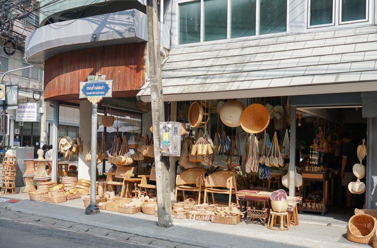 清邁想買編織包、草帽、木藤盤碗筷等生活器具,藤編一條街推薦很好買,也很好拍照打卡 ! 當天有捕抓到在地人也愛來這裡拍網美照 XDD。