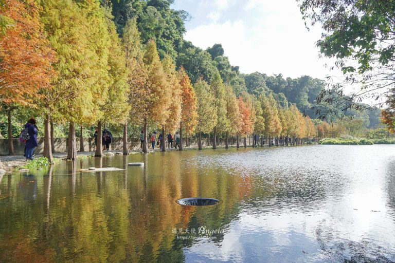 Angela 已關注月眉人工濕地落羽松 3 年了,今年終於來朝聖這片落羽松大道。這裡是大溪近來最受歡迎的賞落羽松地點,最佳觀賞期一般落在 12 月中下旬。今年冷鋒來的晚,落羽松變色較晚,這次在元旦假期依舊有美美的落羽松可以觀賞。