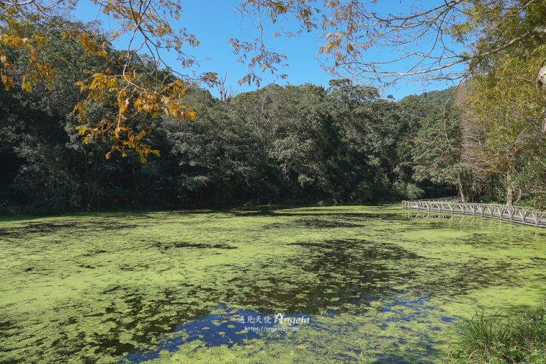 水生植物池的生態很豐富,上面很多浮萍可以看到開著黃色花朵。遠方的池邊不經意就可以發現山羌、夜鷺、鴛鴦與烏龜的身影。