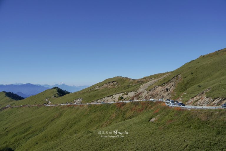 最後附上隔天經過主峰要前往北峰的合歡山公路照片,假日人車很多,高山一早就很熱鬧。早點起床爬山才能看到陽光照耀山頭的壯麗風景!