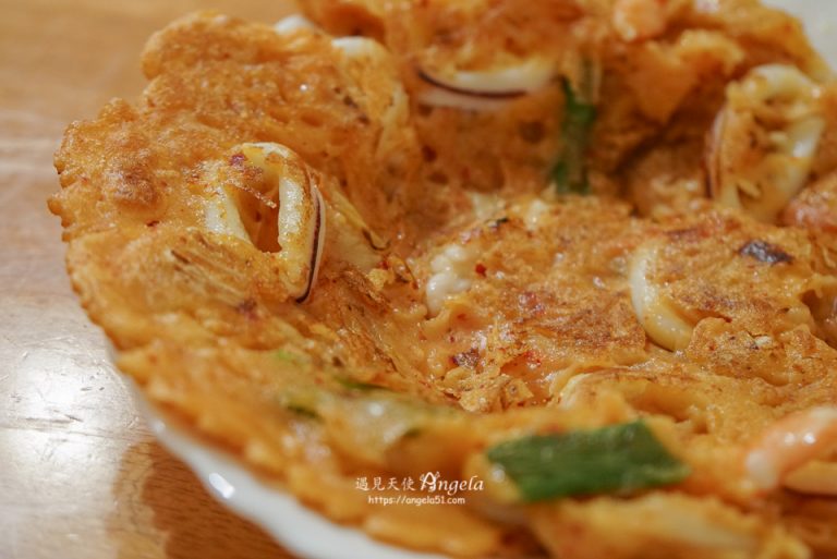 有些人會自己調配煎餅粉,Angela 是直接網購韓國的韓式泡菜煎餅粉,只要加顆雞蛋與水,麵糊比例抓對了,基本上就可以做出好吃的韓式煎餅。