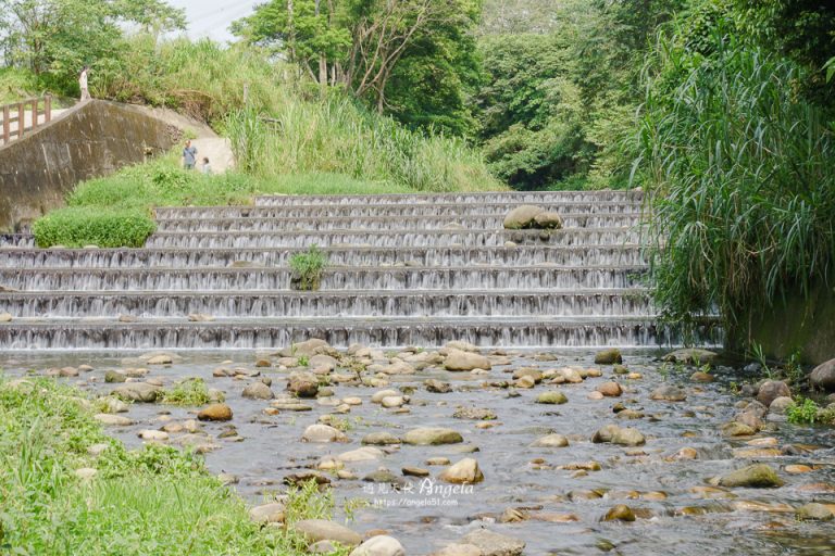 所謂千層瀑布,其實就是階梯式的河道。這邊會成為熱門的玩水景點,主要是因為這邊的水流平穩、自然景觀也不錯,相對安全。階梯設計的河道邊坡,剛好也成為遊客坐在岸上休息的地方,一旁還有鹿點咖啡店,玩水餓了也有飲品可以喝、點心可以吃。難怪會成為受推薦的親子玩水點,天氣一熱,假日下午戲水客比早上多很多。