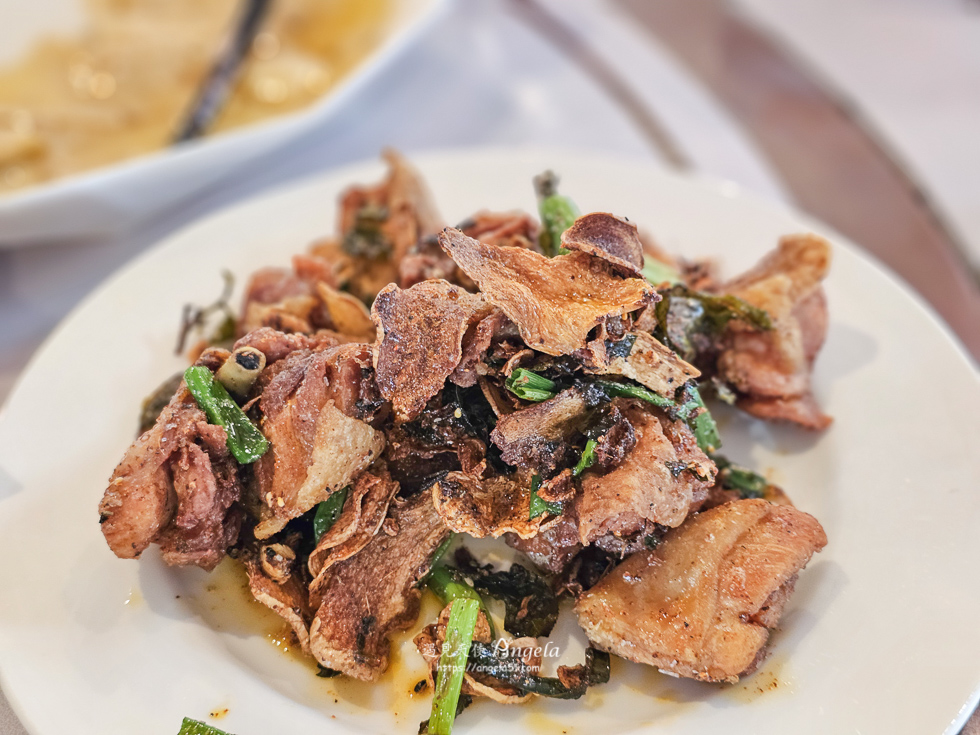 薑以茶油煸的酥脆可以直接入口,雞肉外酥肉質有彈性不會乾柴,這道美食口味也很好,值得推薦。
