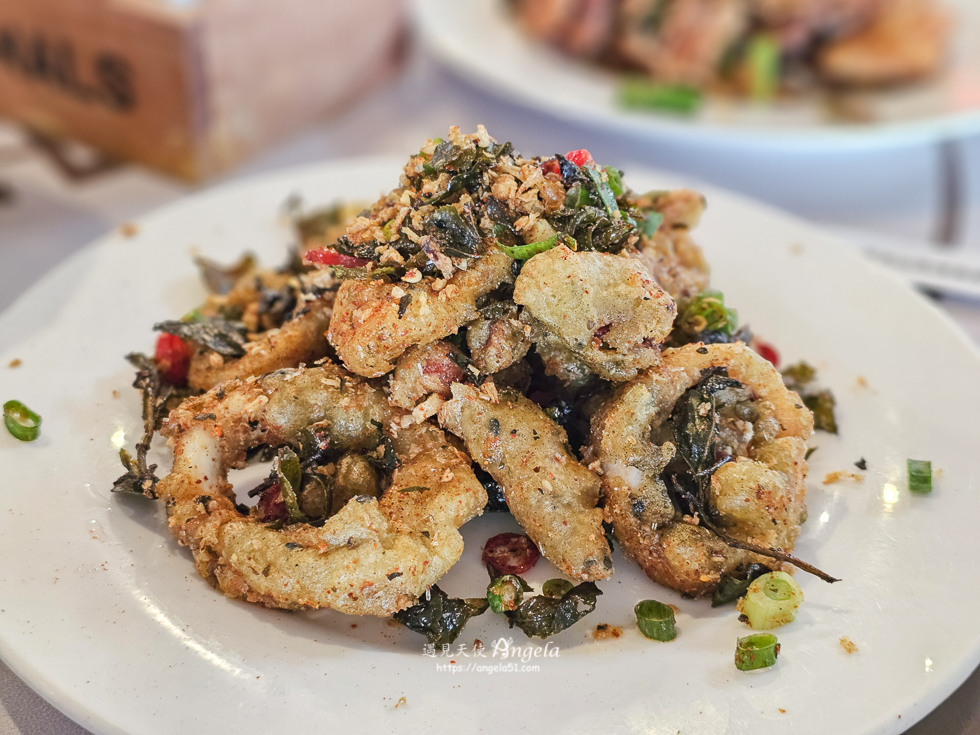 烏龍茶葉蒜香中卷,味道鹹酥,中卷麵衣酥脆肉質軟彈,這是一道屬於重口味的特色菜,不錯吃。