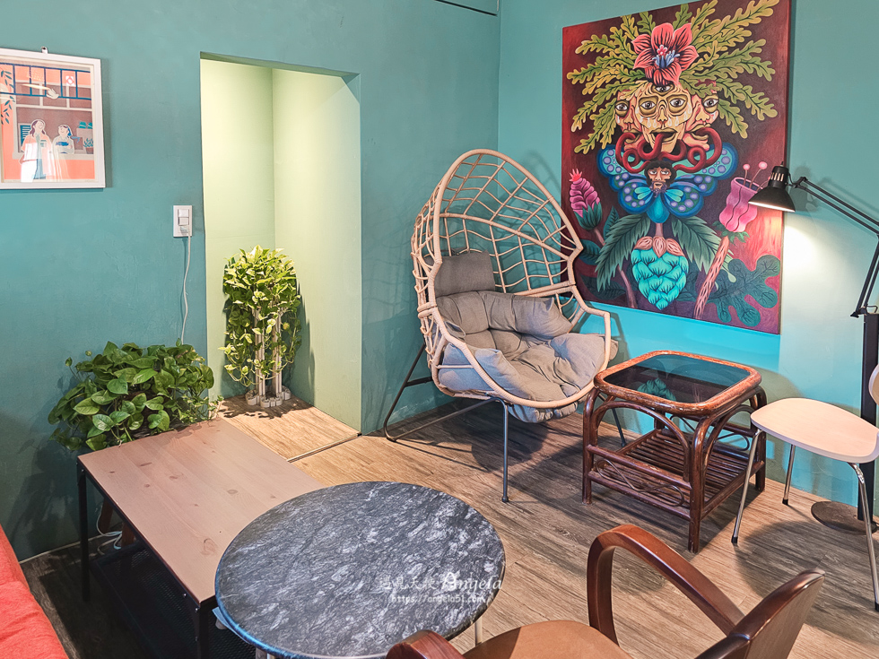 走進後方另一空間,這裡座位數較多。空間陳設多了點現代感的元素在裡面,這區的座位也讓人備感溫馨感。