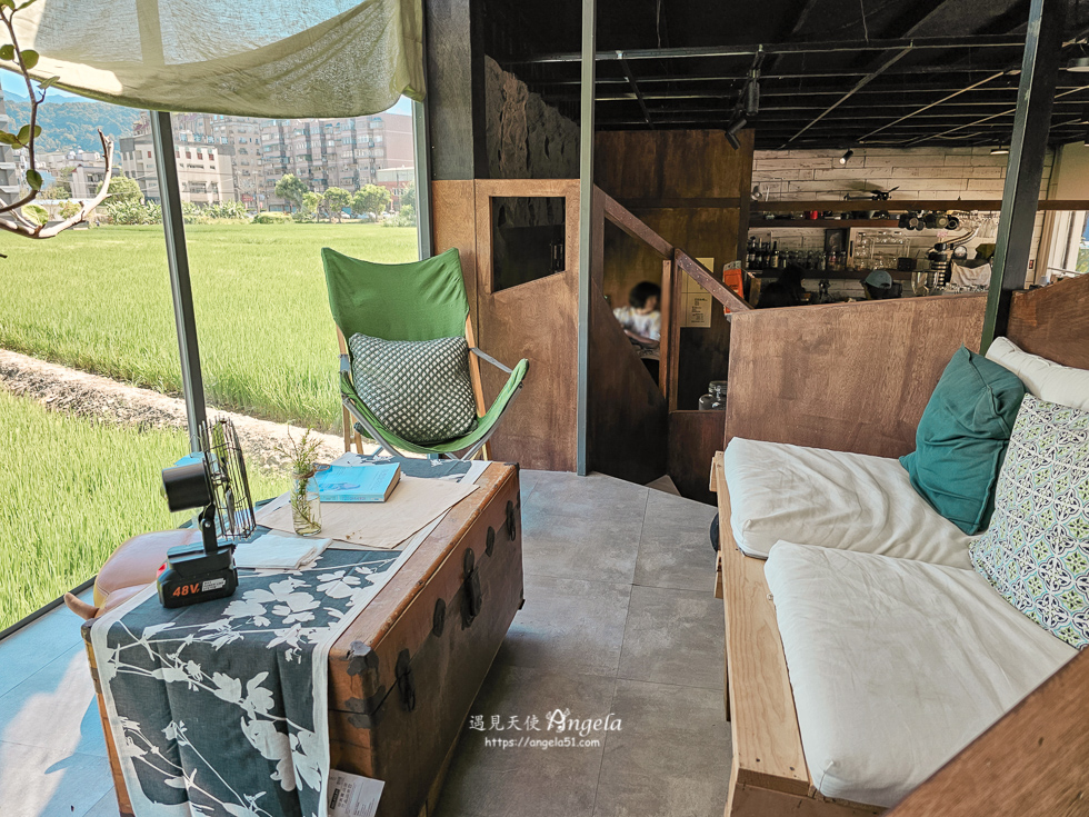 室內還有一個半挑高的小空間,是拍照觀景區,可以坐著欣賞屋外的田園風景。