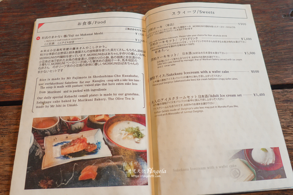 MORIKUNI森林酒藏菜單提供的午餐只有招牌酒糟套餐(酒粕料理),但價位分有兩種,價高者還多了甘酒冰淇淋甜點品項。除了鹹食套餐,這裡也有提供甜點飲品下午茶。