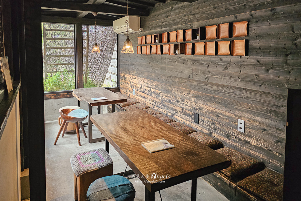 森林酒藏咖啡廳有吧台座位區,也有 2-4 張桌椅座位區。其中,房子一角落的座位區可以同時容納 8 人聚餐。店內也是寵物友善餐廳,當天有一組日本家族旅遊來這吃飯,還帶有狗狗同行,可入內餐廳。