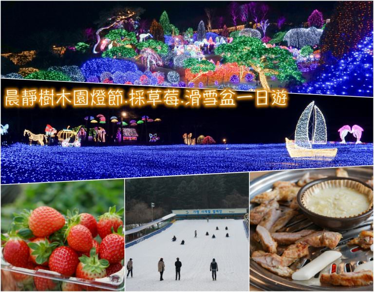 首爾近郊的晨靜樹木園一年四季都美,冬天來晨靜樹木園就是為了浪漫美麗的燈節展,晨靜樹木園五色星光庭園展。五色星光庭園展是晚上才有,這次帶著家人出遊,白天就順便安排採草莓 (韓國冬天的草莓最鮮甜),還有玩雪盆的滑雪活動,輕鬆來個首爾郊區一日遊,採草莓、玩雪盆、看晨靜樹木園燈節展。