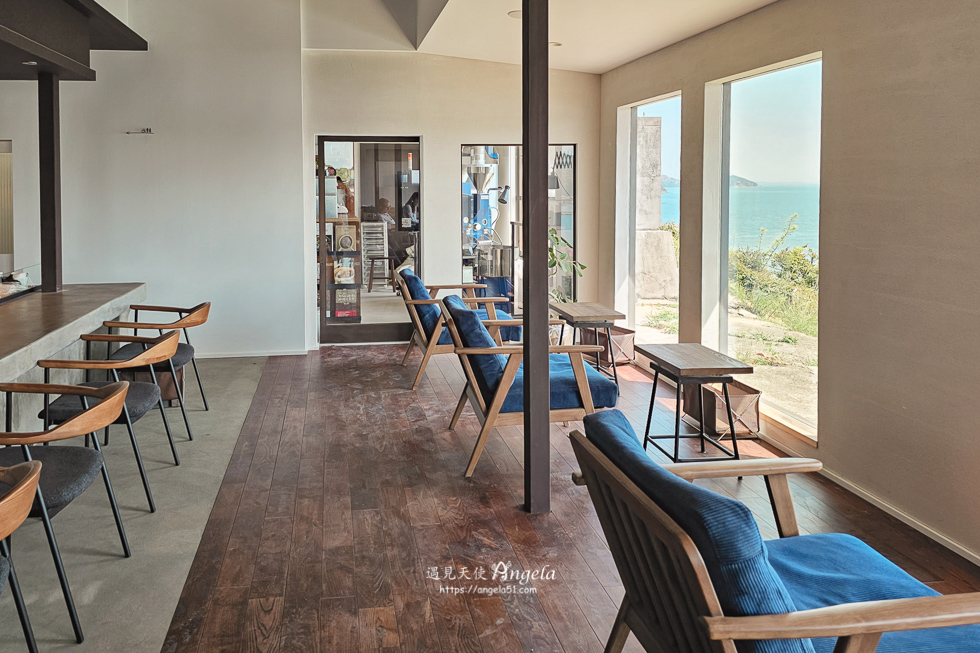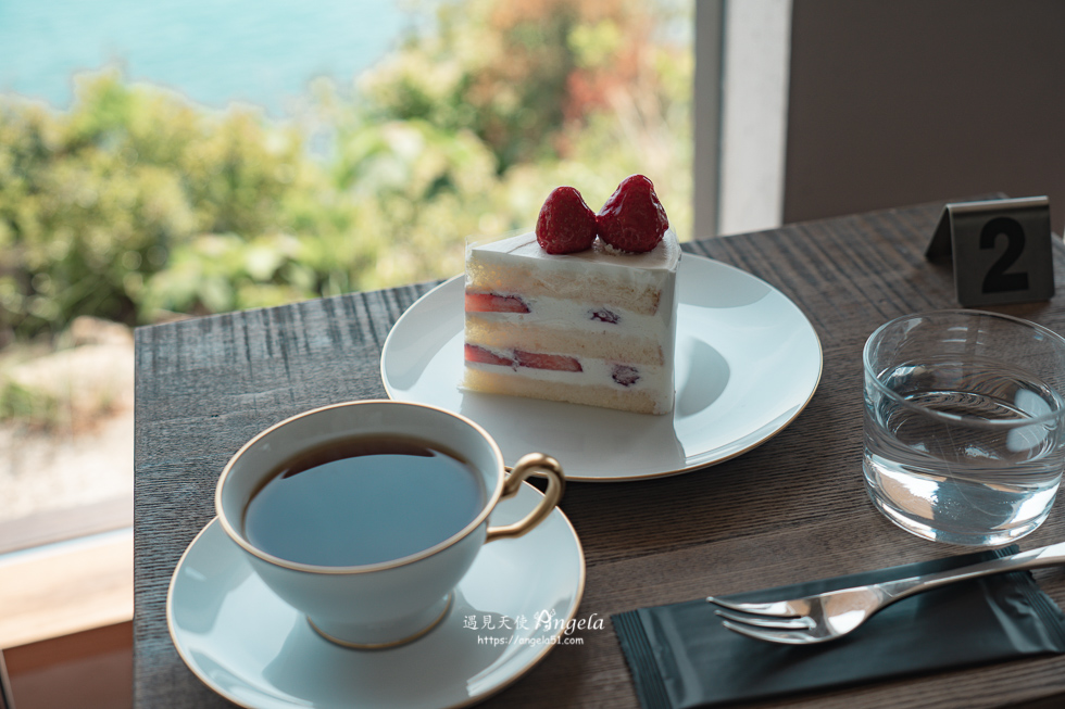 日式庭院的文青風格很讓人舒暢,咖啡廳位置居高臨下,有很好的海景景觀。