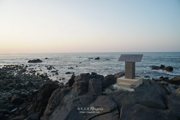 很悠閒的走步道看海,但其實 Angela 來這的目的是找尋地圖上的中華民國領海基點。中華民國領海基點的位置在哪裡 ? 沿著步道走到岸邊的涼亭,從涼亭旁邊的小路走向海邊就可以看見這片廣大的海岸岩石區。要注意潮汐時刻,退潮時段是最佳觀賞時間。