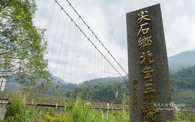 走在北角吊橋上眺望山林與溪流,清澈見底的溪水,可以清楚地看到魚兒水中悠游。漫步吊橋上,享受這山林間的自然寧靜氛圍,平日來此正好是享受清靜的時刻。