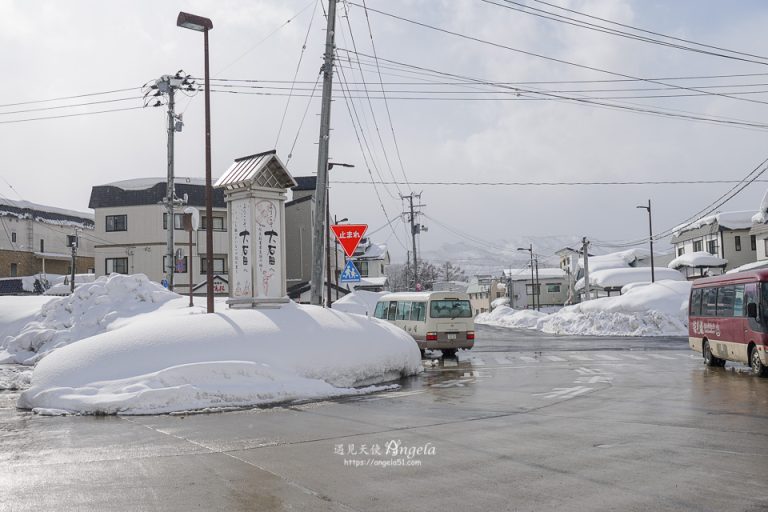 走出 JR 大石田駅,冬天的厚重積雪都在路邊。車站外有雕塑小雪人,遊客可以在這拍照紀念。