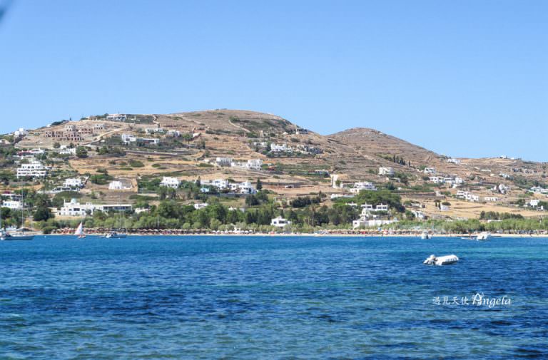 Paros海灘 Livadia beach 位置就在住宿的公寓出來右邊的海灣,步行約 7-8分鐘也不算太遠,沿路還可以盡情的觀看paros港口海灣的風景。