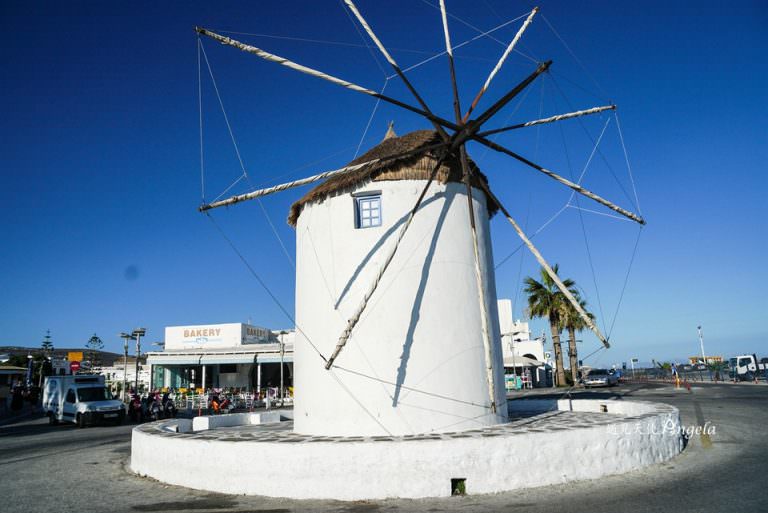 從 paros port 出來面對風車往左邊走約2分鐘,經過一個小公園,小公園旁邊的小路就是Mike Studios 的辦公室位置。