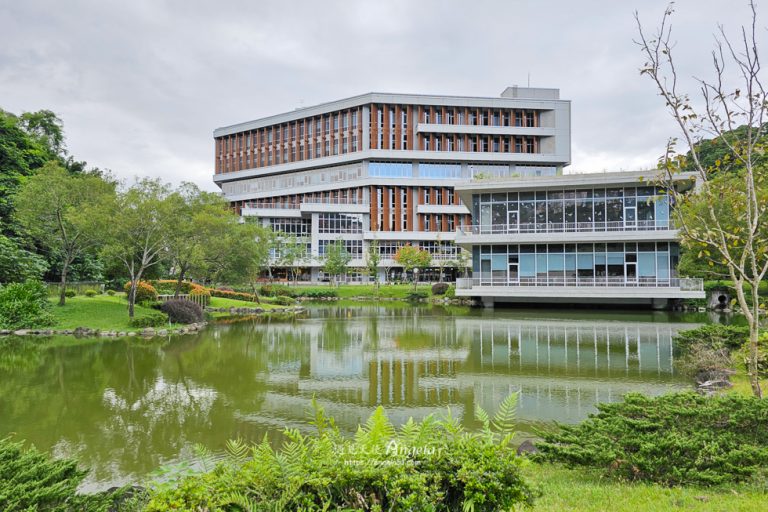 政大達賢圖書館湖濱生態區,靜謐的湖畔景觀,一旁還有湖濱悅讀小屋,整個環境自然靜美很清幽。