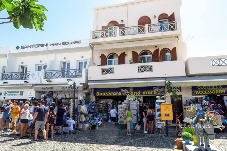 在費拉公車站旁邊大街上的聖托里尼主廣場的紀念品店滿推薦的,裡面的東西很多價格比較後也有便宜,像是到處都可以看到的小布提袋,這裡一個2歐,在其他地方看到都要3 歐以上,買來送小朋友或裝便當挺不錯的XDD。