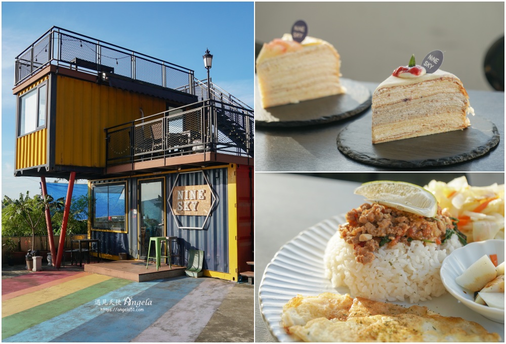 可以遠眺大漢溪風景,特別的是咖啡廳位置在宮廟旁,NineSky 九天的千層蛋糕評價高,店內的義大利麵也頗受歡迎。