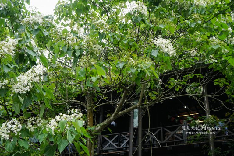 依山坡而建的有隻喵景觀不錯,位置也很優越就在勝興車站對面,餐廳前面還有2大棵油桐花,4、5月來正好油桐花開,做在這裡喝咖啡賞桐花很舒適。