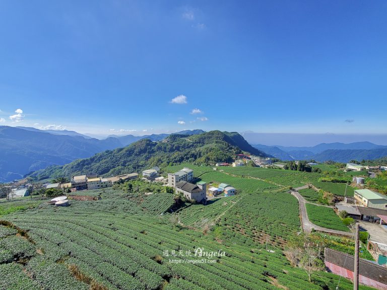蜿蜒的山路上四周都是綠色茶園美景,這裡是頂石棹,也是石棹民宿區。