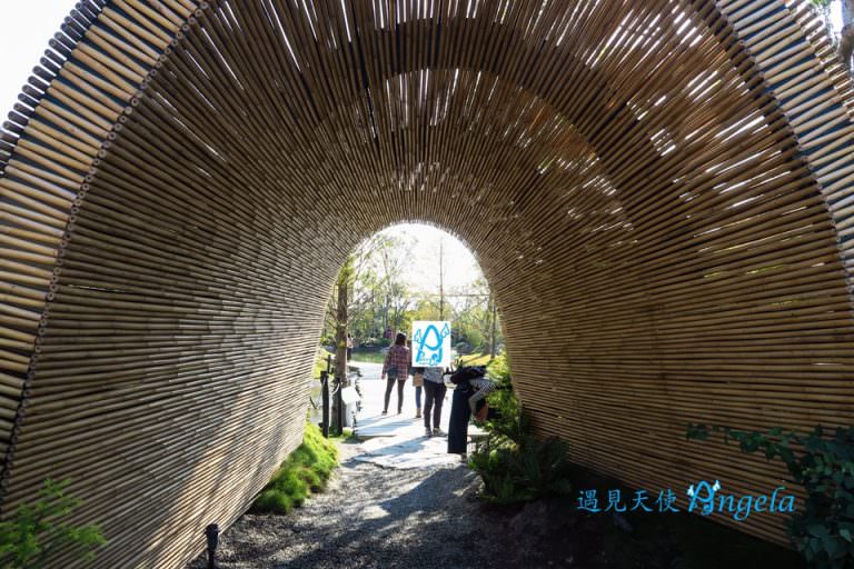 這個惠宇森青小花園位置在五權西路二段與永春東七路之間,旁邊就是台中玉市場。腹地不大的小花園在前後入口都有竹子搭建的拱門,從車水馬龍的馬路穿過竹拱門就是一處清新自然的人工湖小花園。這樣的環境真的是城市中的秘境~