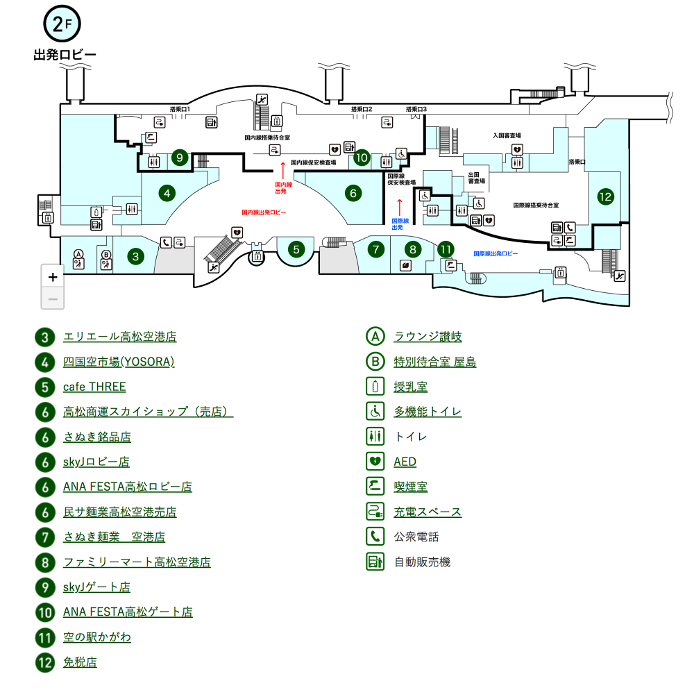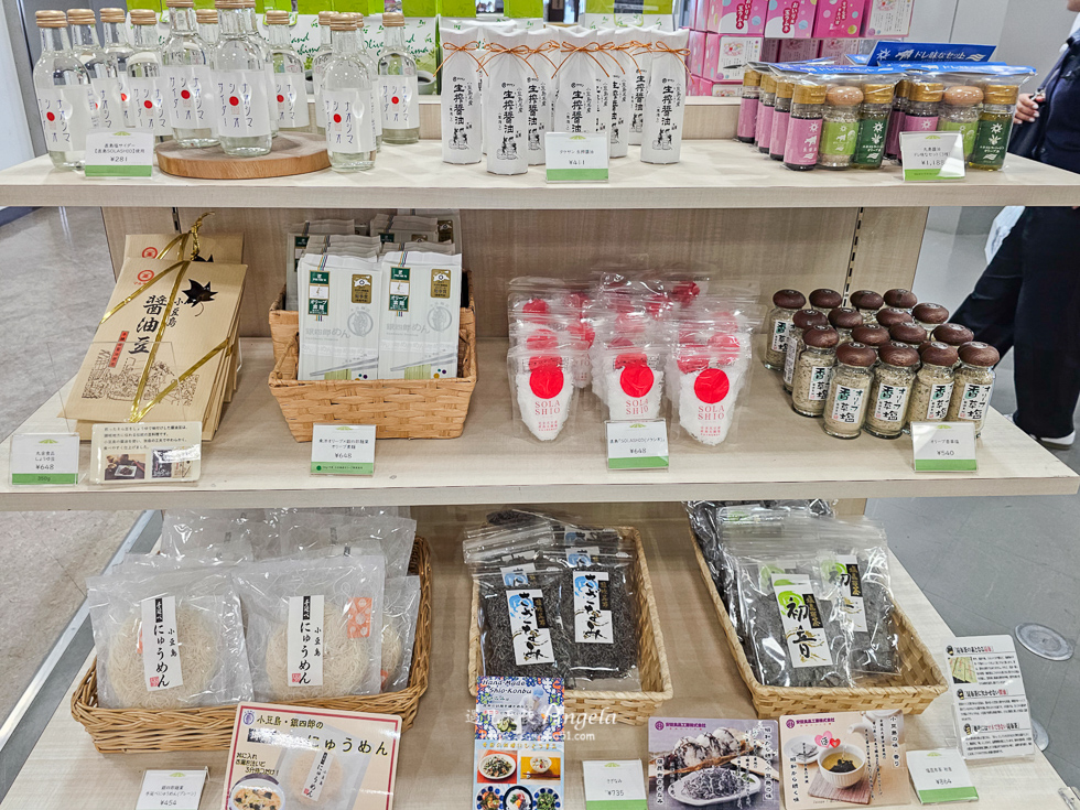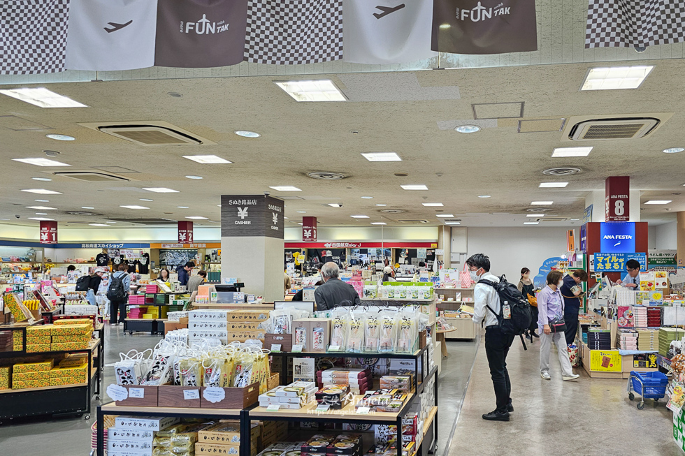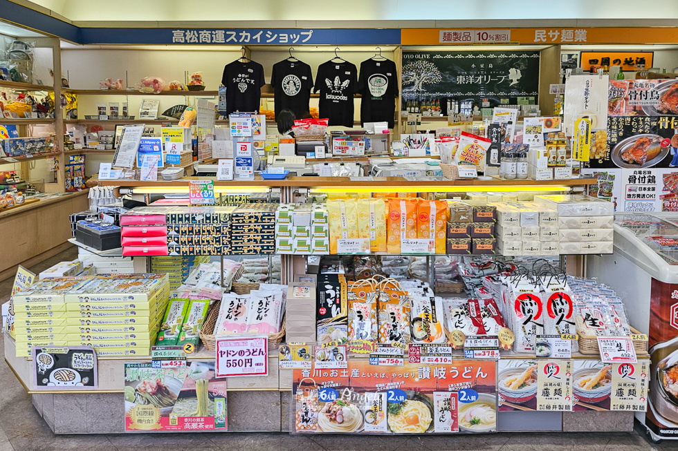 高松空港不大,國內線與國際線都在同一層樓,各居左右兩側。回國前想要來高松機場買特色伴手禮,推薦機場 2 樓國內線端的特產店,凡舉四國相關特產伴手禮都有。但要注意,這邊買的東西不能超過100ml 重的液體或膠狀物,不然之後要進海關安檢就要丟棄,除非你的行李還沒完成托運。