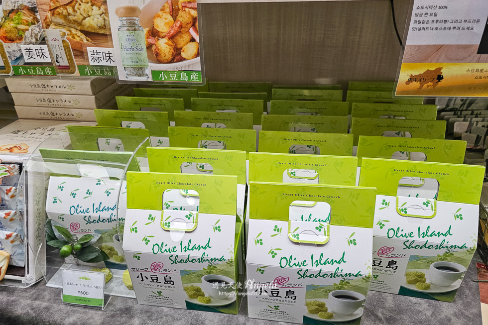 機場免稅店雖然不大,但基本的四國小豆島特產都有賣,甚至這常見的橄欖菓子,機場賣的比較便宜。