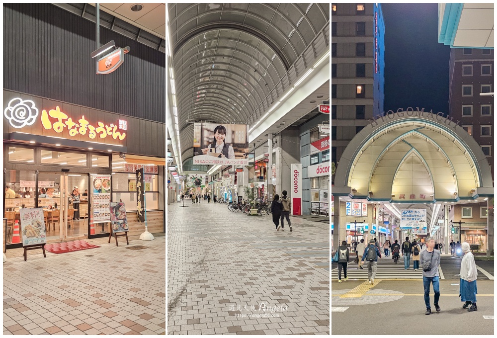 兵庫町商店街比較樸實無華,這邊主要有一些美食餐廳,付骨鳥、烏龍麵、日式定食等餐廳都有。其中以骨付鳥寄鳥味鳥居酒屋人氣最高。