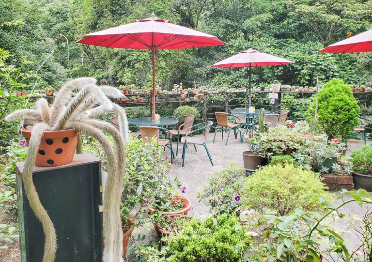 自然簡約的巴尚咖啡,有室內座位區,也有戶外庭園座位。