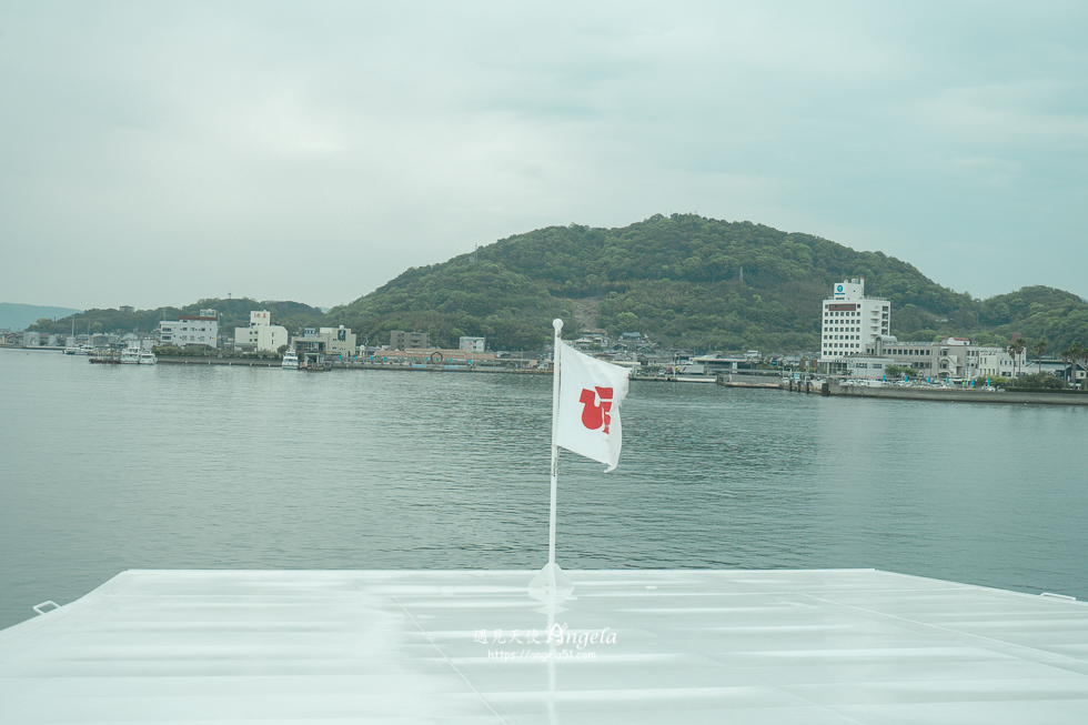 搭乘小豆島渡輪在船艙內就可以遠眺碼頭邊的太陽的贈禮,像是在迎接大家的到來。