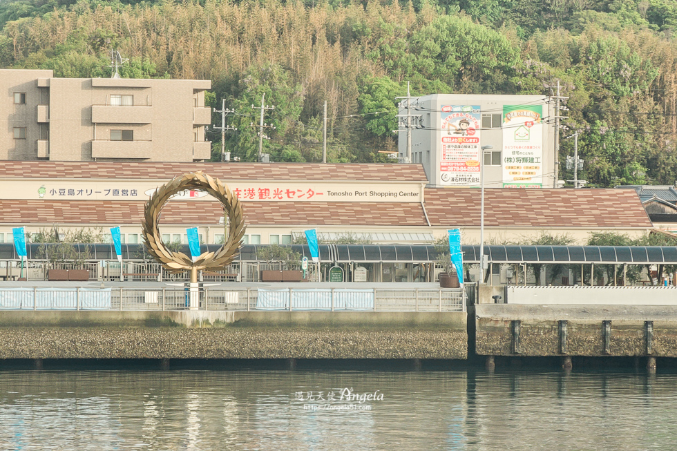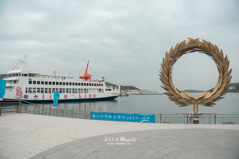 抵達小豆島土庄港後,佇立在碼頭邊的太陽的贈禮是最醒目的標的物。太陽的贈禮是 2022 年瀨戶內海藝術祭的作品,也是每個遊客來到土庄港必拍的景點。