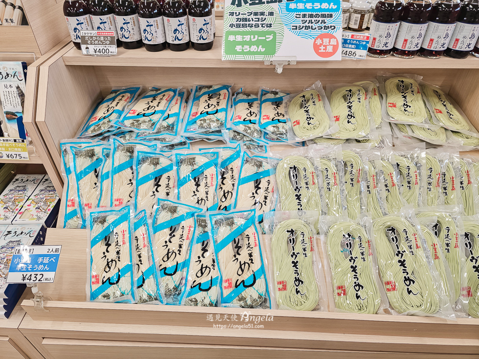 小豆島土庄港觀光中心裡面除了有設置遊客服務中心外,裡面還有販售島上各式特產商品。橄欖油相關、醬油、素麵等小豆島上的特色伴手禮產品通通都有。很好買!!