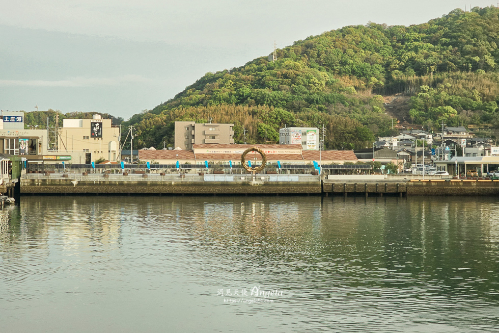 土庄港的碼頭,渡輪與高速艇分別在不同的位置,在渡輪斜前方的建築物是 Tonosho Port Tourist Centre 小豆島遊客中心(土庄港觀光中心)。