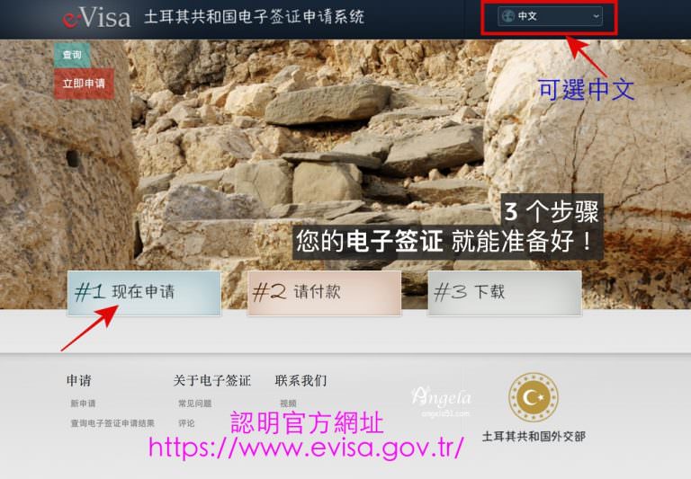 進到土耳其官方的電子簽證申請網站,點選中文,依著畫面填入個人資料。就是這麼簡單!
