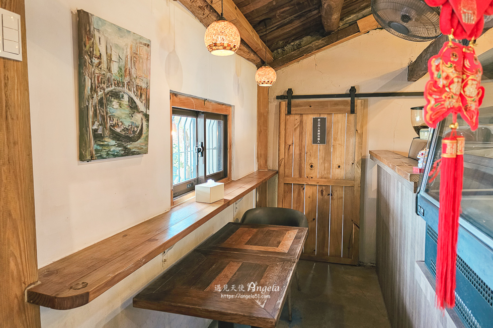 室內座位不多,木造的樑柱更顯得老屋的珍貴。屋頂上有開洞讓光線引入室內,增加明亮度。
