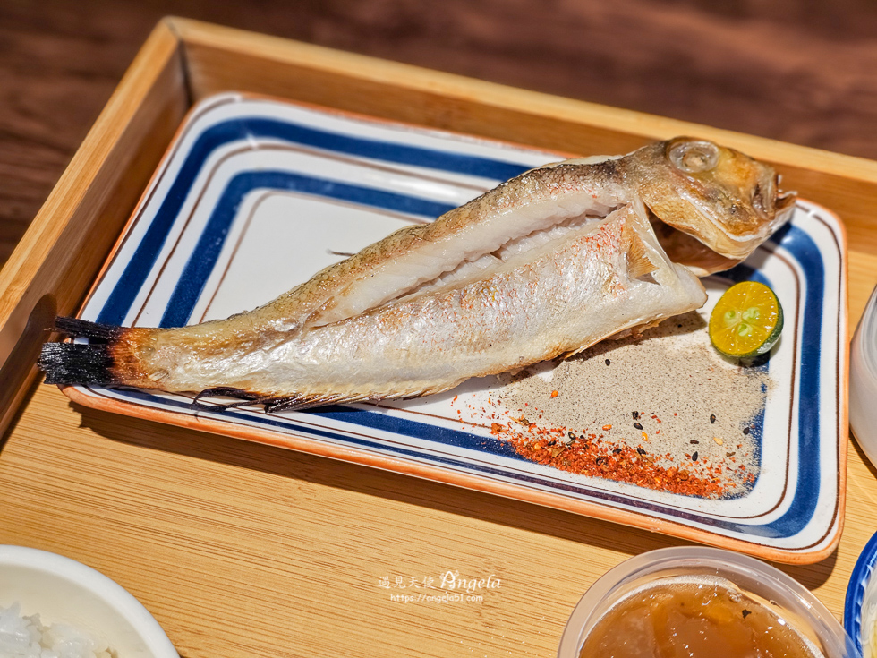 本來要點紅喉定食,但已經賣完了,只好選擇雙拼。紅喉中卷雙拼的魚比較小隻一些,魚肉吃起來稍微乾硬,不知道是不是魚小的緣故。相較於馬頭魚,當天最喜歡馬頭魚的烤魚質感,紅喉表現反而一般。